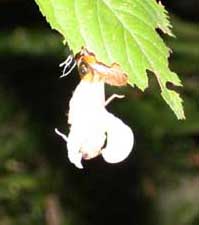 | 今回はせみが地中から出て羽化をしているだろうと桜の木などのあるところに行き、せみの羽化を観察しました。講師の先生の注意をよく守り、せみには手を触れないようにして観察しました。数匹のせみに出会い羽化の様子を見ることが出来ました。おまけにカブトムシが蜜を吸いに大木に群がっているのも見ることが出来ました。 |