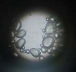 デジカメで手持ちで撮った顕微鏡写真。やっと撮り、材料の名前まで確認できませんでした。