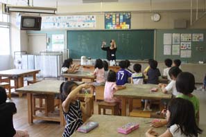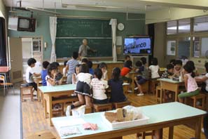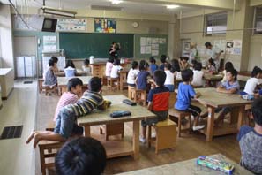 参加者が多く低学年は実験1,2,3と教室を回りました。高学年午後から別クラス