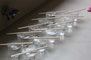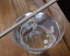 2.  タコ糸を 10cm 位の長さに切り、割り箸(コップの上に渡す棒)に