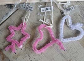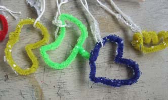 3. モールに名前を張り紐をつけ、液の中につるす。
