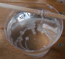 4. モールに結晶が析出してくる。(1日くらい待つとよい。)