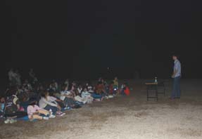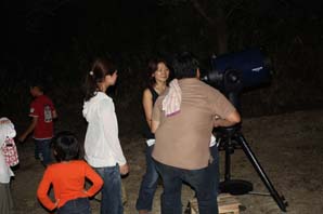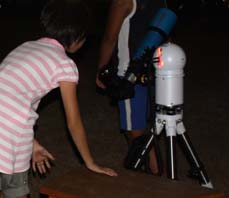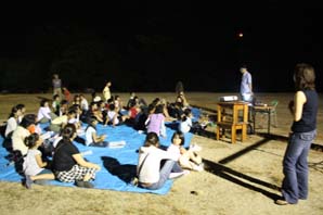 | 8月なら土星が観測できると、急遽観測会をすることになり、計画しました。観測会の前、曇りの日が多く気をもみましたが、観測会を開くことが出来ました。土星は地平線近くにあり、肉眼では見えないのですが、望遠鏡では縦方向にリングが観測できて、大喜びでした。そのほか夏の大三角形を作っている星や星雲を観測しました。双眼鏡で星団も観測しました。終わり頃には月も観測でき、参加した皆さん大満足でした。 |