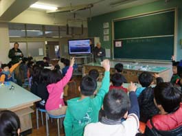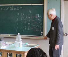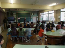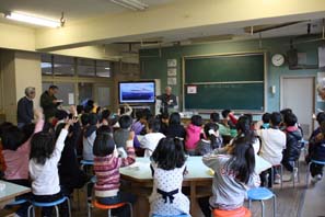 | 以下 高学年の組での実験 班毎実験の予定だったが時間の関係で全体で一つの実験となった。 |