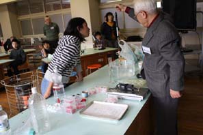 | ○ この講座の一番の見所はゴム粘土をどのようにして水に浮かべるか興味のあったところである。 |