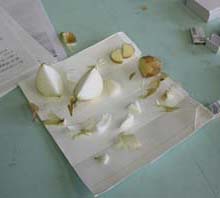| 児童たちは顕微鏡でのぞいたたまねぎの細胞等熱心にスケッチをしていた除いてない顕微鏡から写した写真を数枚乗せてあります(倍率 任意)。余裕のある子供は与えられた課題以外にも挑戦していた。 |
