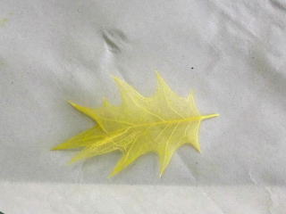 | 水酸化ナトリウムで煮た葉 | 歯ブラシで葉をたたいて葉脈を取り出す |