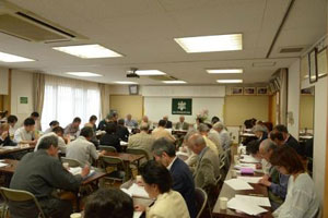 各団体の総会は、正午から連合町内会、地区社協、防犯協、防災協、交対協、消防後援会、自治振興会、コミュニティ協、地域協働協の順に分刻みの時程で進められ、最大69人の参加者をもって次々に議事が進行していきました。