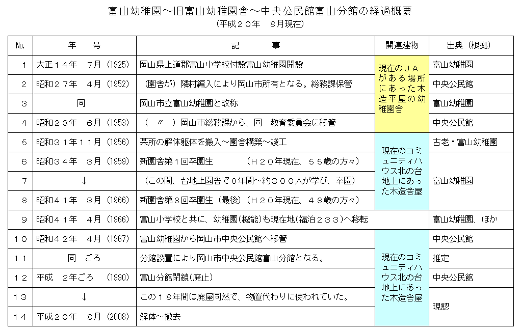 (文・写真:小野田、資料協力:岡山市立富山幼稚園・岡山市立中央公民館)