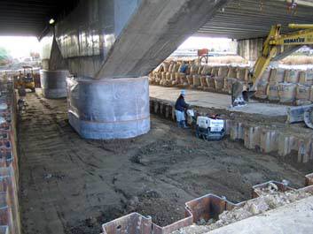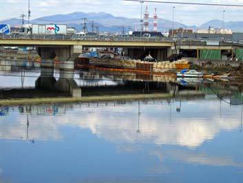 平成51年3月に全区間開通した国道2号線岡山バイパスの橋脚耐震補強工事が笹が瀬川の増水期を避けて10月より行われた。
