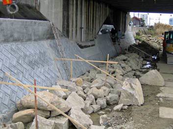 測道の交通量も多い中、交通規制を伴う難工事であった。