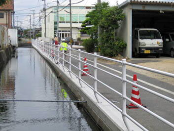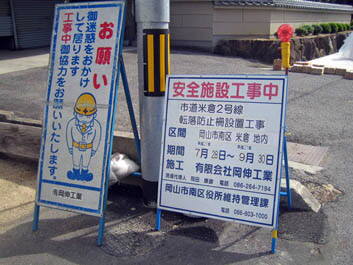 通学路に面する町内中央部に工場進出が進められ、稼働後はかなりの交通量が予測される、子どもたちの安全を図るべく転落防止棚設置要望書を岡山市に提出した。