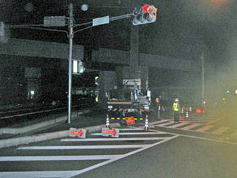 念願の歩道橋架設工事が平成19年10月15日夜間全面通行止めにして行われた。