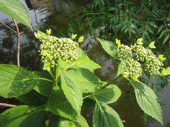 | 田植えも近い、苗代で日増しに生育する早苗 | 入梅を待つ藤田用水の紫陽花 | |