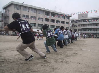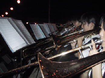 きずなV 夜間土嚢を築き堤防を守り沖合いを見つめる